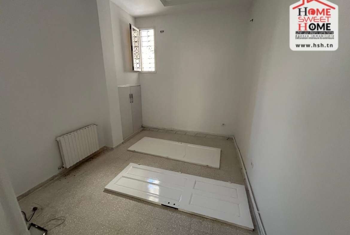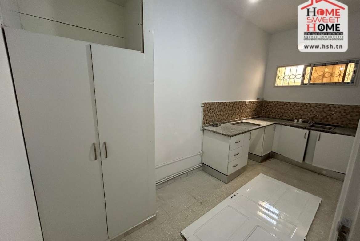 Un appart au RDC avec une entrée indépendante idéal pour usage d’habitation ou bureautique situé dans une résidence à Ksar Said. A L’entrée, On a un salon, une cuisine, 2 chambres et une salle de bain. Cet appart dispose également un abris de voiture à l’extérieur. Pour tous les renseignements, Contacter l’agent sur le 56370820.
