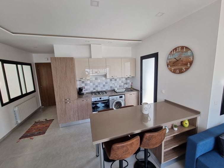 A louer à l’année chez l’agence TPS Immobilière à Hammamet, un charmant appartement au 1er étage d’une petite copropriété à Hammamet Nord, à 200 m de la route touristique avec toutes les commodités et à 2 km de la vieille médina.