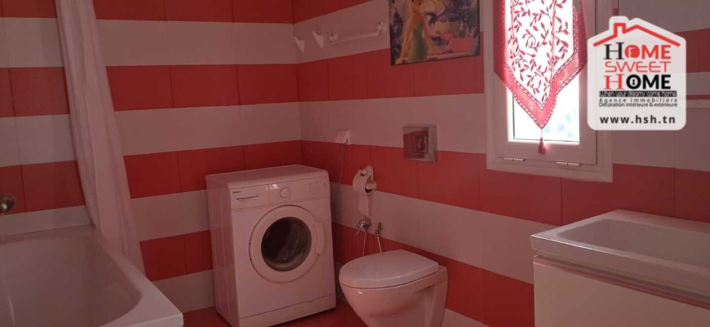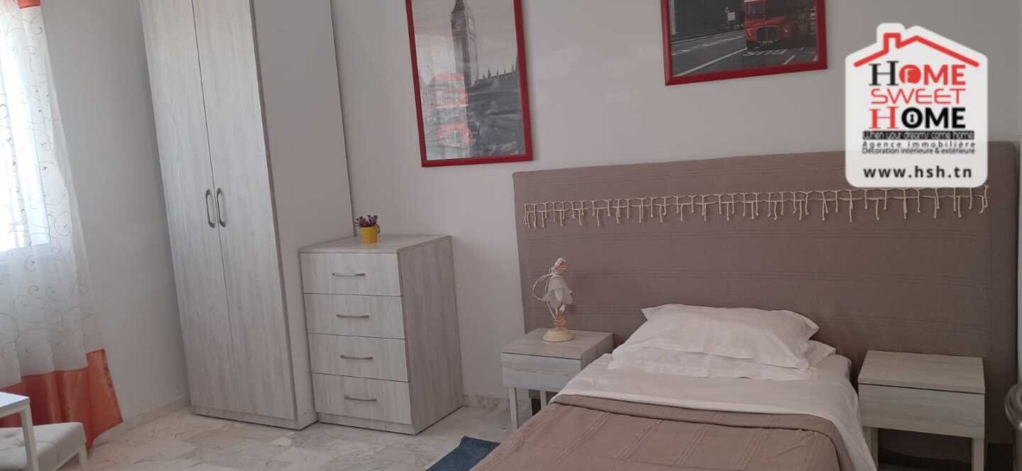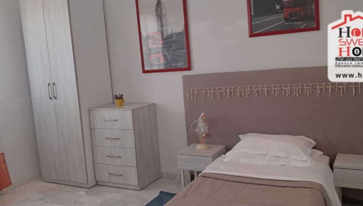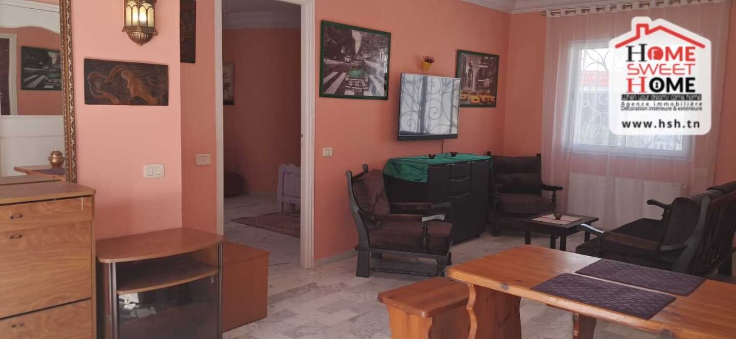 Un 1 er étage meublé avec une entrée indépendante et à 100 m de la plage de Salambo. À L’entrée, On a une grande terrasse avec barbecue, une kitchenette ouverte sur un salon, 2 chambres et une salle de bain. Prix incluant consommations Electricité, Eau, Gaz, Climatiseur et Internet. NB : Le tarif pour la courte durée est de 120 DT par nuitée pour les mois de Mai et Juin, et de 150 DT par nuitée pour les mois de Juillet et Août. Pour tous les renseignements, Contacter l’agent sur le 54670670.