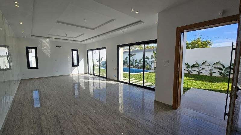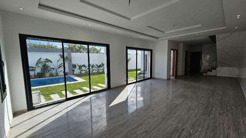 A vendre chez l’agence TPS Immobilière Hammamet, une belle villa neuve ultra moderne avec une piscine et très bien orientée, bien située à l’entrée d’Hammamet zone Craxi.La villa est organisée sur deux niveaux, elle comporte au rez de chaussée un spacieux salon-salle à manger donnant sur une merveilleuse terrasse, le jardin ainsi que la piscine, une belle cuisine moderne et bien aménagée, une chambre à coucher et une salle d’eau pour les invites.Accédant à l’étage à travers des beaux escaliers, on trouve une suite parentale, 2 chambres à coucher, une SDD commune et un coin dressing.A l’extérieur, vous bénéficiez d’une piscine, un jardin gazonné et un parking pour voiture.La villa est équipée du chauffage central, de la climatisation, des caméras des surveillances, un système d’alarme et un système domotique