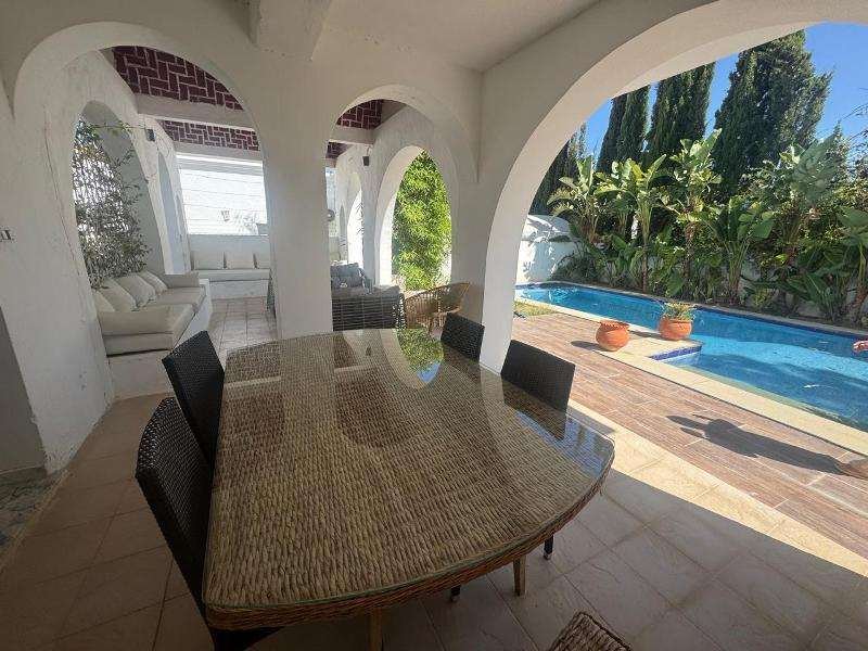 TPS IMMOBILIERE vous propose à la vente une belle villa bien située dans un quartier résidentiel à la zone Jinen Hammamet, à deux pas de la mer, au calme absolu et proche de toutes les commodités.Un énorme potentiel à mettre en valeur, une jolie villa embellie par une belle piscine au milieu d’une large pelouse verdoyante.Idéalement placé et baigné de soleil, le RDC se compose d’un salon, une suite parentale, une petite chambre, une belle cuisine et une salle d’eau pour invités.Passant au premier étage, vous bénéficiez de deux suites , deux chambres à coucher et une salle de bain.Quant au deuxième étage, cette perle dispose d’un toit d’une magnifique vue dégagée.Un sous-sol où vous trouvez une chambre est aussi à votre disposition.Ce bien séduit par ses espaces extérieurs, soigneusement entretenus!