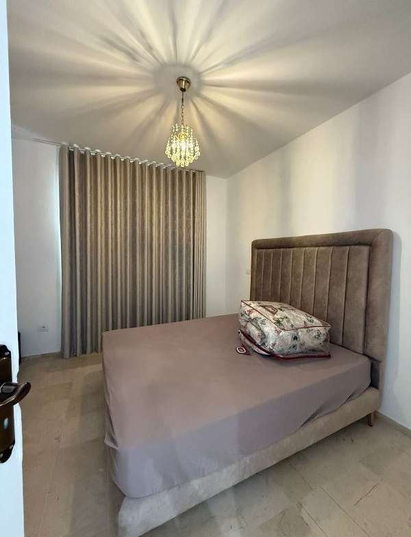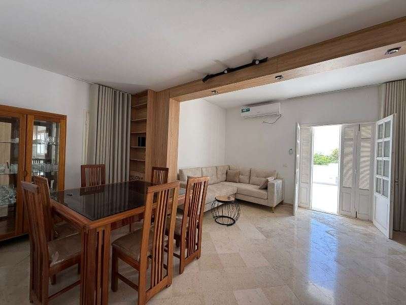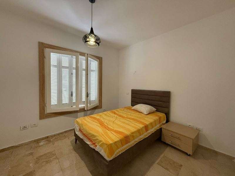 À l’étage, un appartement indépendant de type S+2 comprend un salon, une cuisine, deux chambres, une SDD ainsi qu’une grande terrasse ouverte.