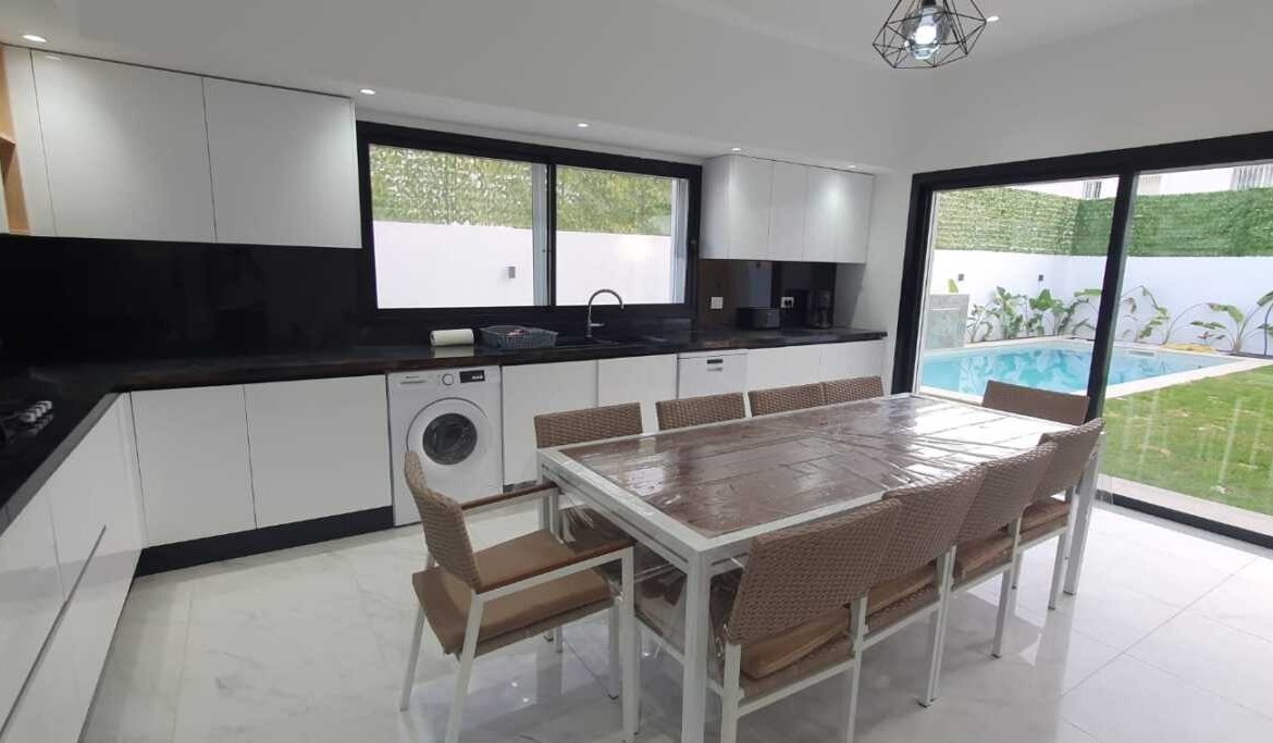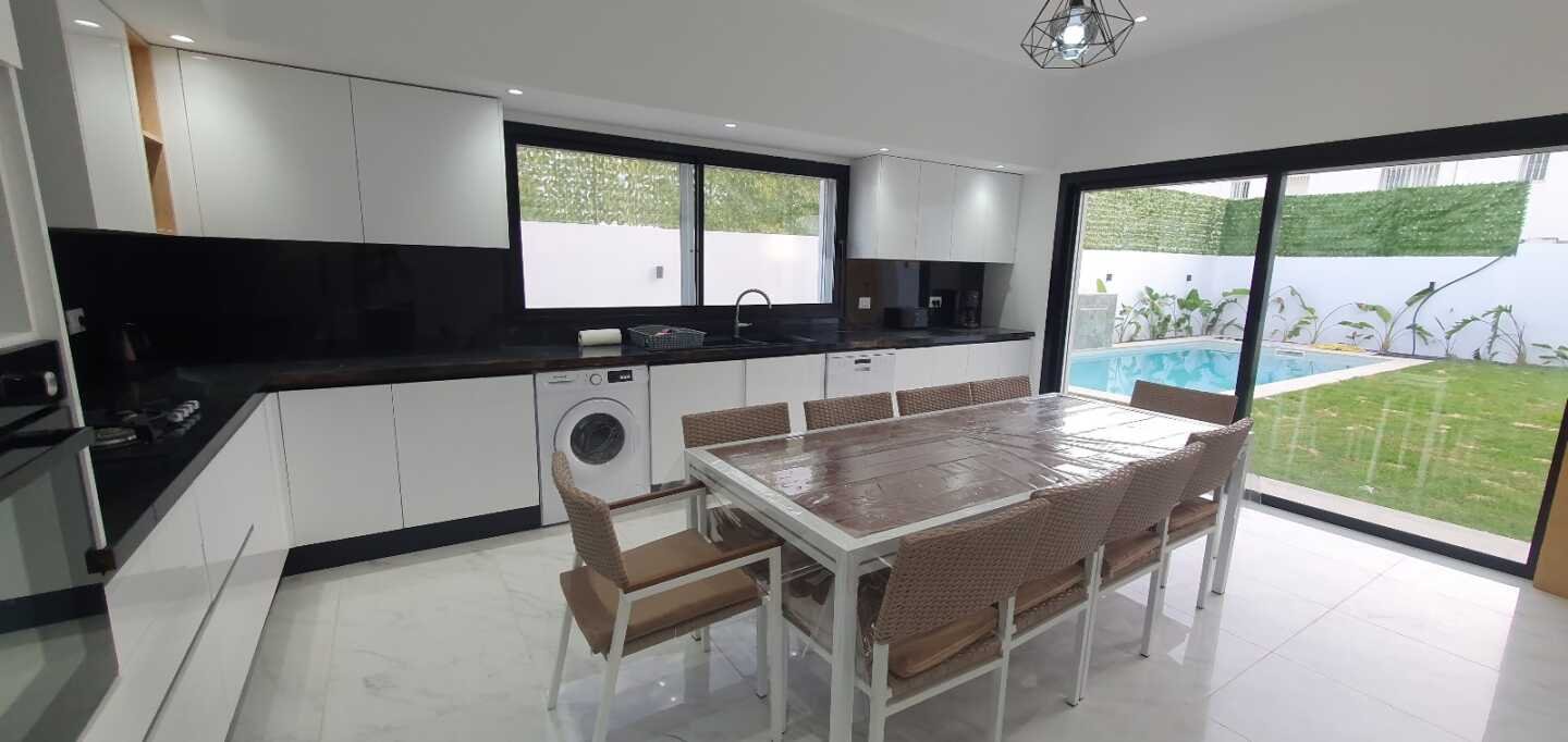 A louer pour les vacances chez l’agence TPS Immobilière Hammamet, une villa de standing, situé dans un quartier calme et résidentiel à Hammamet zone théâtre .