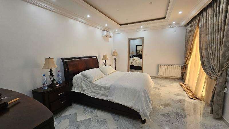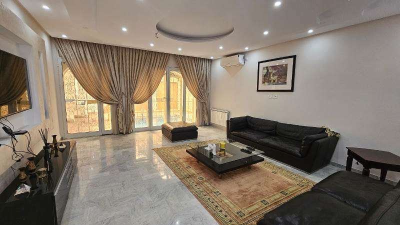 La villa est organisée sur trois niveaux, elle comporte au rez de chaussée un spacieux salon-salle à manger donnant sur une merveilleuse terrasse, le jardin ainsi que la piscine, une belle cuisine bien équipée et une SDD au mezzanine.